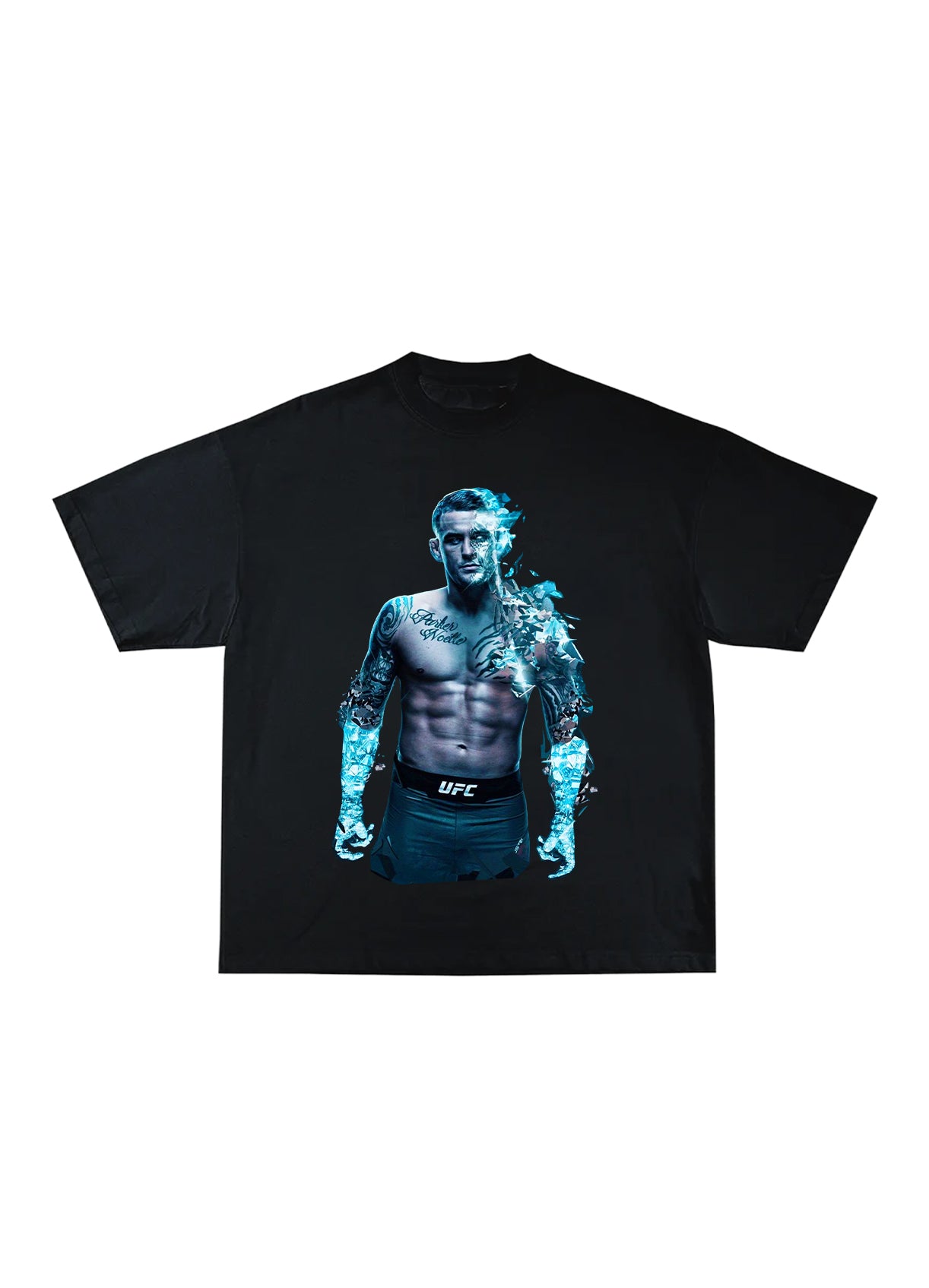 Тази тениска носи двойнствената енергия на Dustin Po(r)ier: отпред – „Ice Mode“, символ на контрол и точност; отзад – „WAR Mode“, чиста атака и решителност. Тя е за хора, които остават спокойни под напрежение, но превключват на огън, когато е време за действие. Не е просто дреха – това е манталитет, който казва: не отстъпвам, а надграждам.